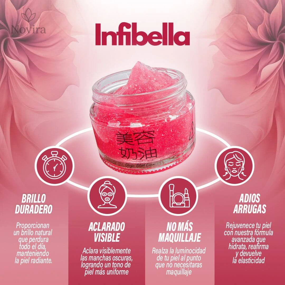 Aplica una pequeña cantidad de Infibella en el rostro limpio, masajeando suavemente hasta que se absorba por completo, dos veces al día (mañana y noche).